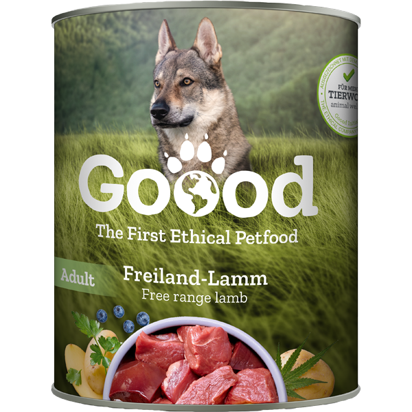 Goood Adult Natvoer Vrije Uitloop Lam is een complete maaltijd voor volwassen honden. Bereid met mals lam uit vrije uitloop en een rijke mix van ingrediënten voor een volle smaak.