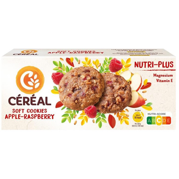 Céréal Zachte Koekjes Appel Framboos zijn fruitige koekjes met een zachte bite. Fijn voor bij de thee, in de lunchbox of onderweg. Met Céréal Zachte Koekjes Appel Framboos geef je je tussendoor-moment een vrolijke twist.