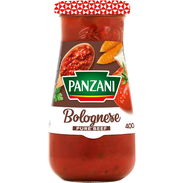 Panzani Pure Beef Bolognese Saus is een rijke pastasaus bereid met mager rundvlees en zongerijpte tomaten. De volle, hartige smaak past perfect bij spaghetti, penne of lasagne. Direct klaar voor gebruik, ideaal voor een snelle en smaakvolle maaltijd.